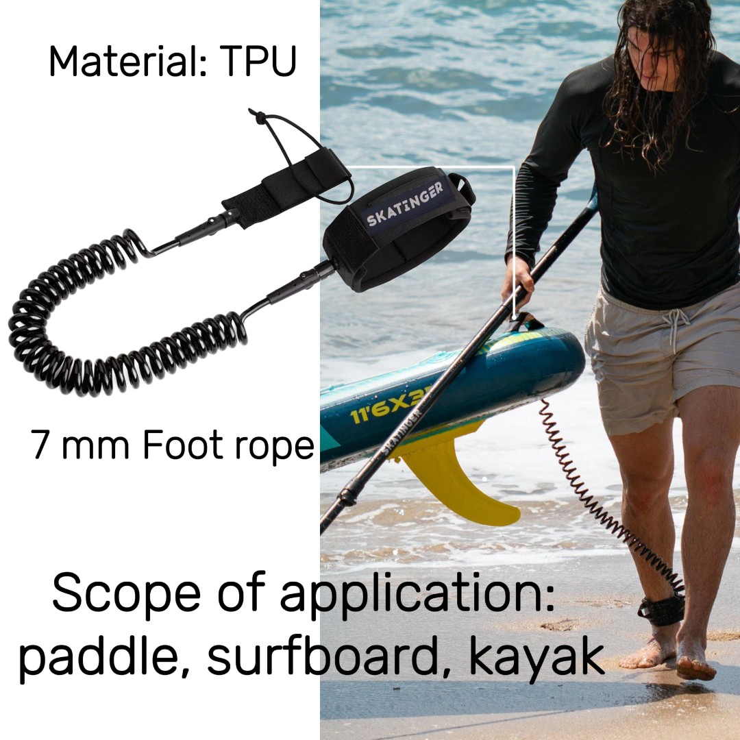 ✔️ Durable & Tangle-Free: 7 mm TPU cord provides maximum strength and durability. Double stainless steel swivels prevent tangling. Ideal for small to medium waves.